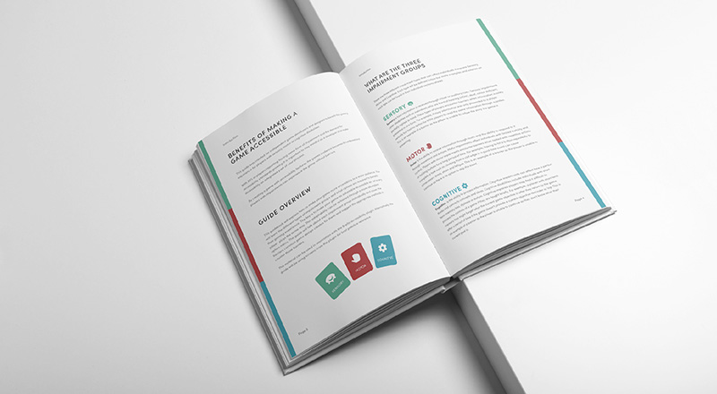 The guide starts by explaining the different types of impairments and the categories they fall under. These category’s being ; visual, auditory, motor and cognitive. Each type of impairment creates a set of barriers for players. These barriers can be overcome with a variety of game options and considered design choices. All of which the guides explain through a series of examples, explanations and recommendations.
